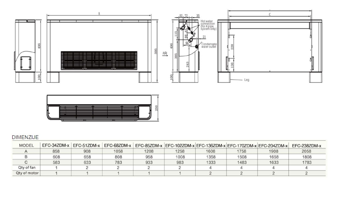 EFC-034-ZDM-2 parapetni ventilokonvektor 3.300 / 1.750 watt