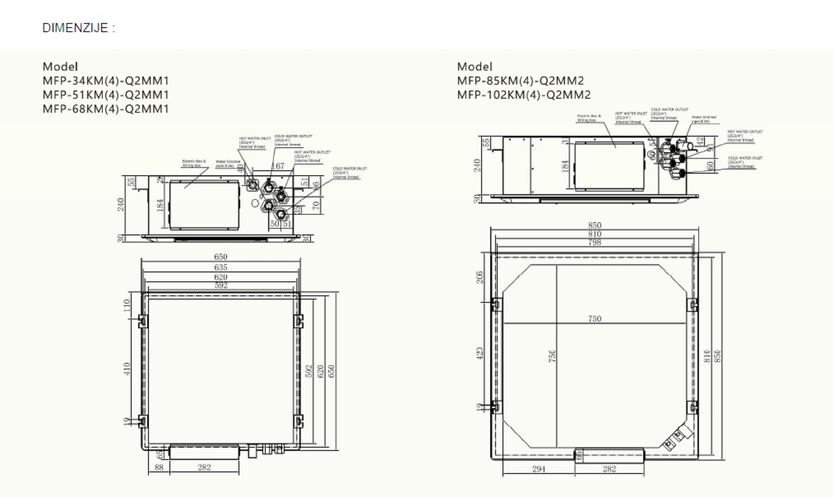 LCF-085-KM-2 kazetni ventilokonvektor za grijanje i hlađenje, 7.800/4.800 watt
